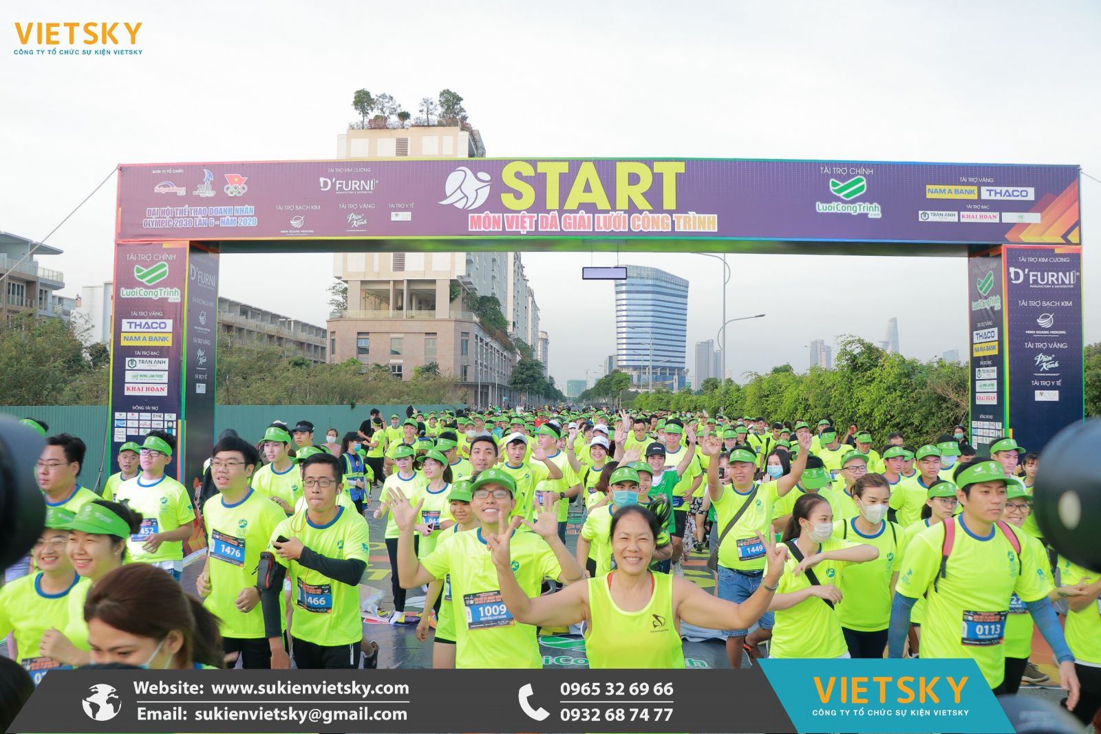 Với mong muốn đồng hành cùng quý khách hàng để có thể lan tỏa được nhiều thông điệp ý nghĩa đến với cộng đồng. Đồng thời góp phần nhỏ bé vào phát triển du lịch nước nhà. Chúng tôi Công ty tổ chức sự kiện VIETSKY tự hào là đơn vị chuyên tổ chức giải chạy marathon chuyên nghiệp tại Việt Nam. Với nhiều năm kinh nghiệm và tổ chức hàng trăm giải chạy thành công cùng với đội ngũ nhân viên được đào tạo chuyên nghiệp sẽ đem lại một giải chạy hoành tráng và thành công tốt đẹp. Hãy liên hệ chúng tôi để nhận được tư vấn chi tiết và nhiều ưu đãi.
