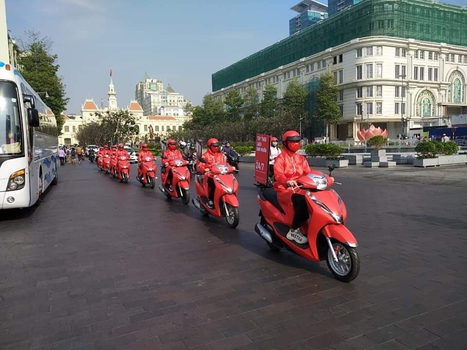 - Chạy roadshow bằng xe máy: Phù hợp cho những chiến dịch cần tiếp cận nhanh chóng và rộng rãi hơn