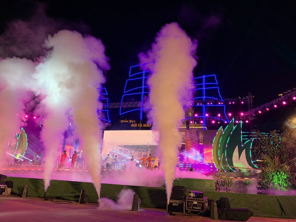 Hình ảnh thực tế thi công sân khấu Lễ Khai Mạc Tuần Văn Hóa Du Lịch Cà Mau 2019