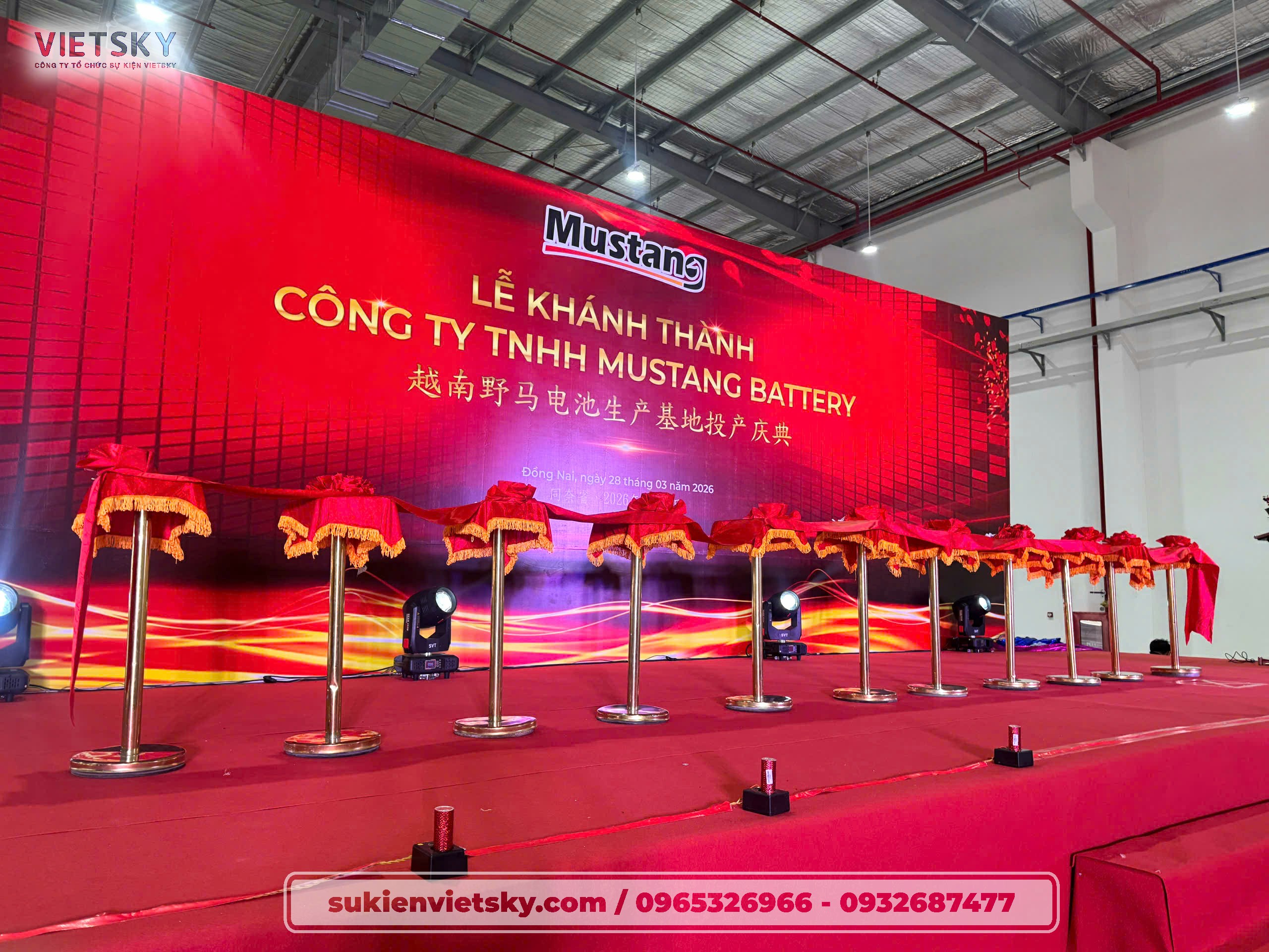 Trong không khí trang trọng và tràn đầy năng lượng của những ngày đầu năm 2026, Công ty TNHH Mustang Battery đã chính thức tổ chức lễ khánh thành nhà máy sản xuất tại tỉnh Đồng Nai. Sự kiện không chỉ là cột mốc quan trọng trong chiến lược mở rộng thị trường của Mustang tại Việt Nam mà còn là minh chứng cho năng lực tổ chức sự kiện đẳng cấp của Vietsky.