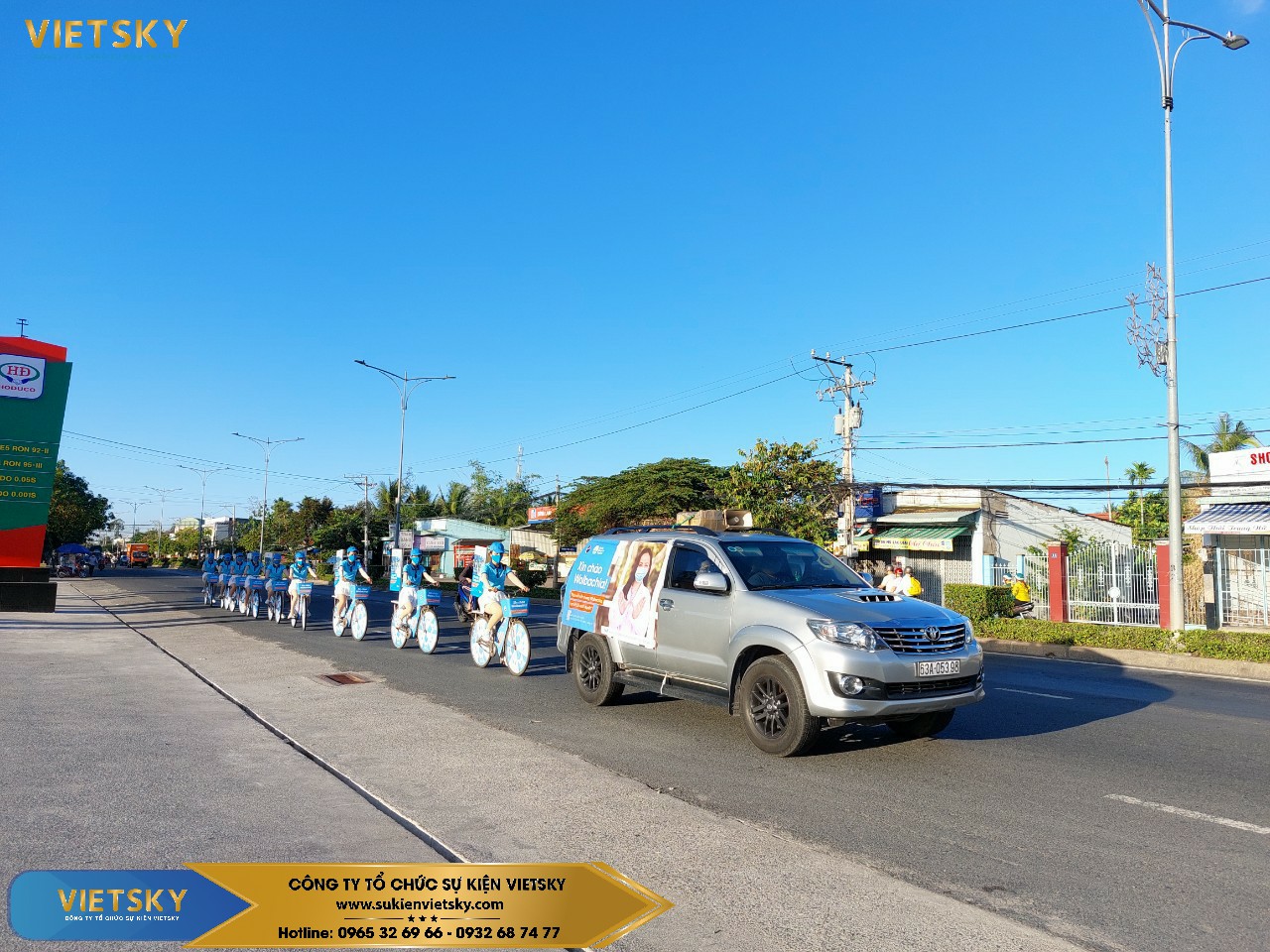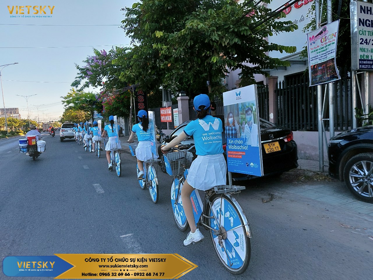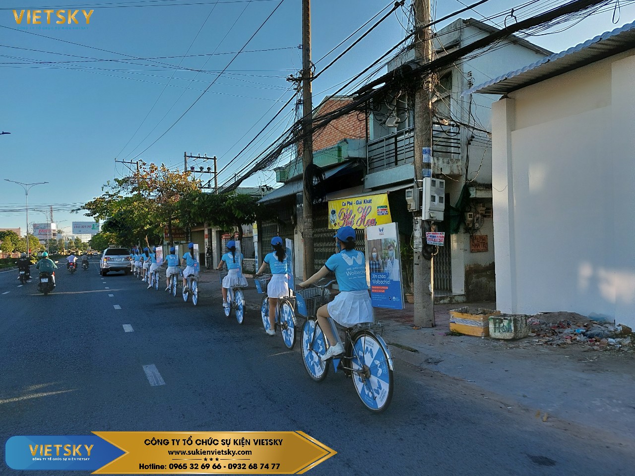 Hình ảnh đoàn xe đạp trang trí bắt mắt diễu hành trên đường phố sẽ thu hút sự chú ý của người đi đường. Với việc kết hợp các hoạt động như phát tờ rơi, sampling sản phẩm hoặc các màn hoạt náo, roadshow xe đạp có thể tạo ra trải nghiệm thú vị và ghi dấu ấn sâu sắc trong tâm trí khách hàng